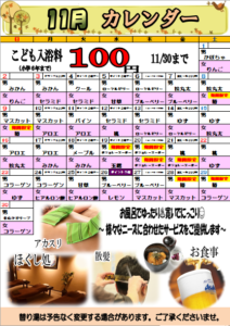 今月は毎日こども(小学6年まで)入浴料が100円です!