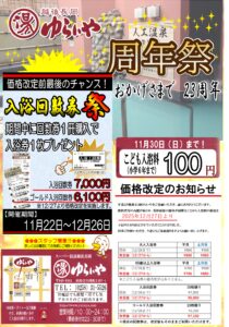 いよいよ1130日までとなりました。こども(小学6年まで)入浴料100円!