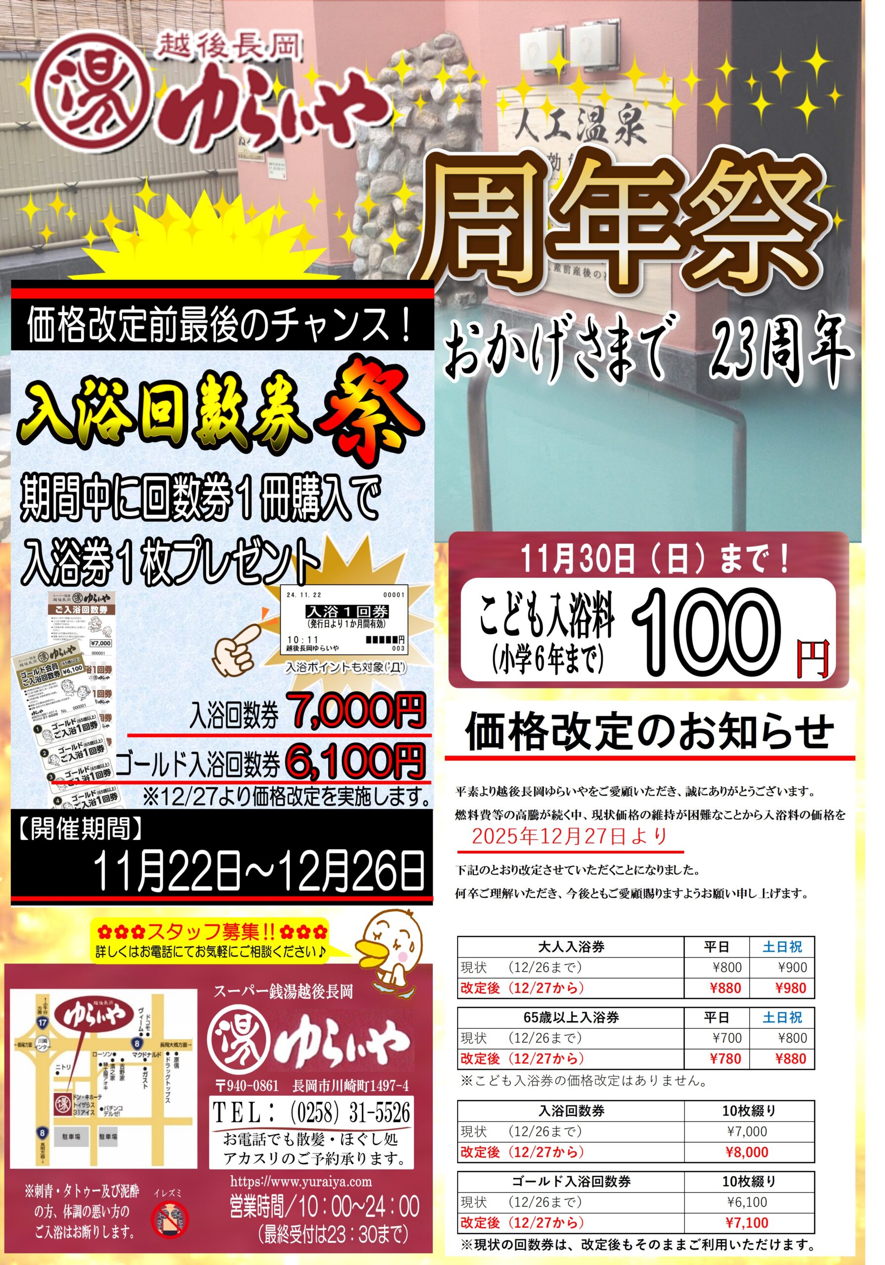 「越後長岡ゆらいや おかげさまで23周年祭」開催中!