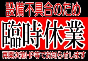 設備の不具合により臨時休業いたします。