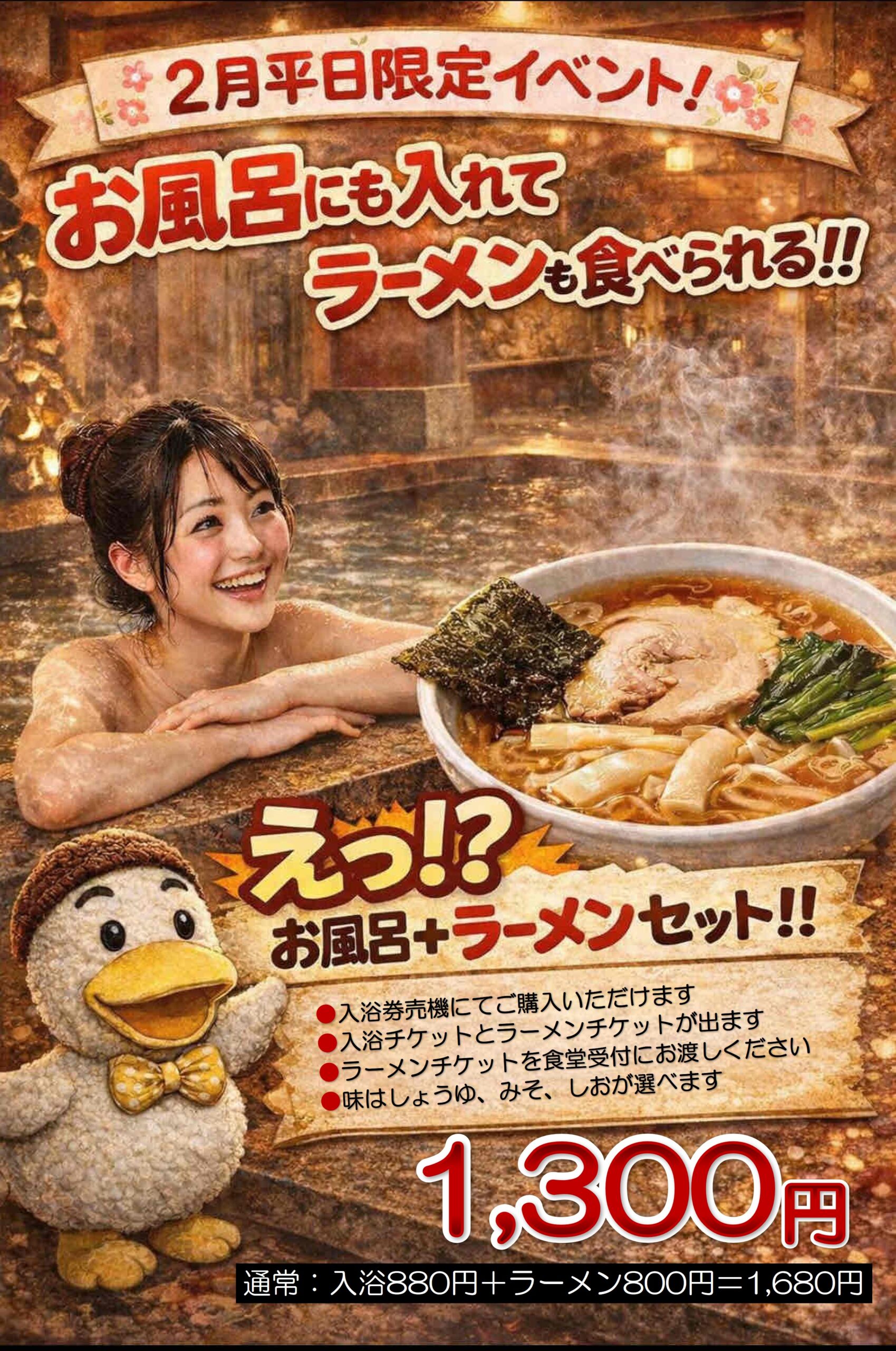 2月平日限定「入浴&ラーメンセット」開催♨🍜❣